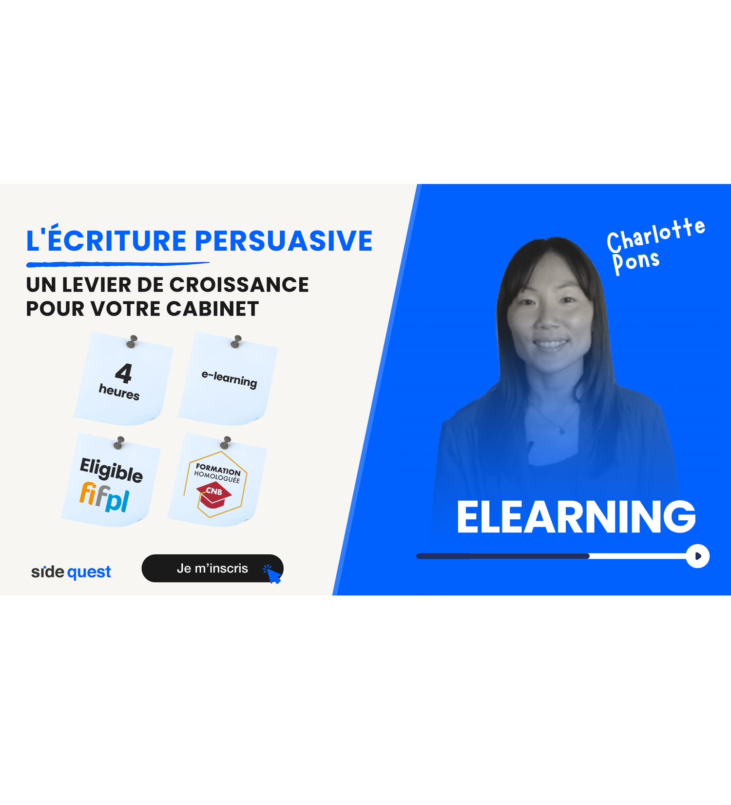 Pour cette formation, nous nous sommes entourés de Charlotte PONS, ancienne juriste et créatrice du podcast "Le journal de Charlotte", accompagne les legaltech et les juristes innovants dans leur croissance grâce à son œil marketing et sa plume persuasive !