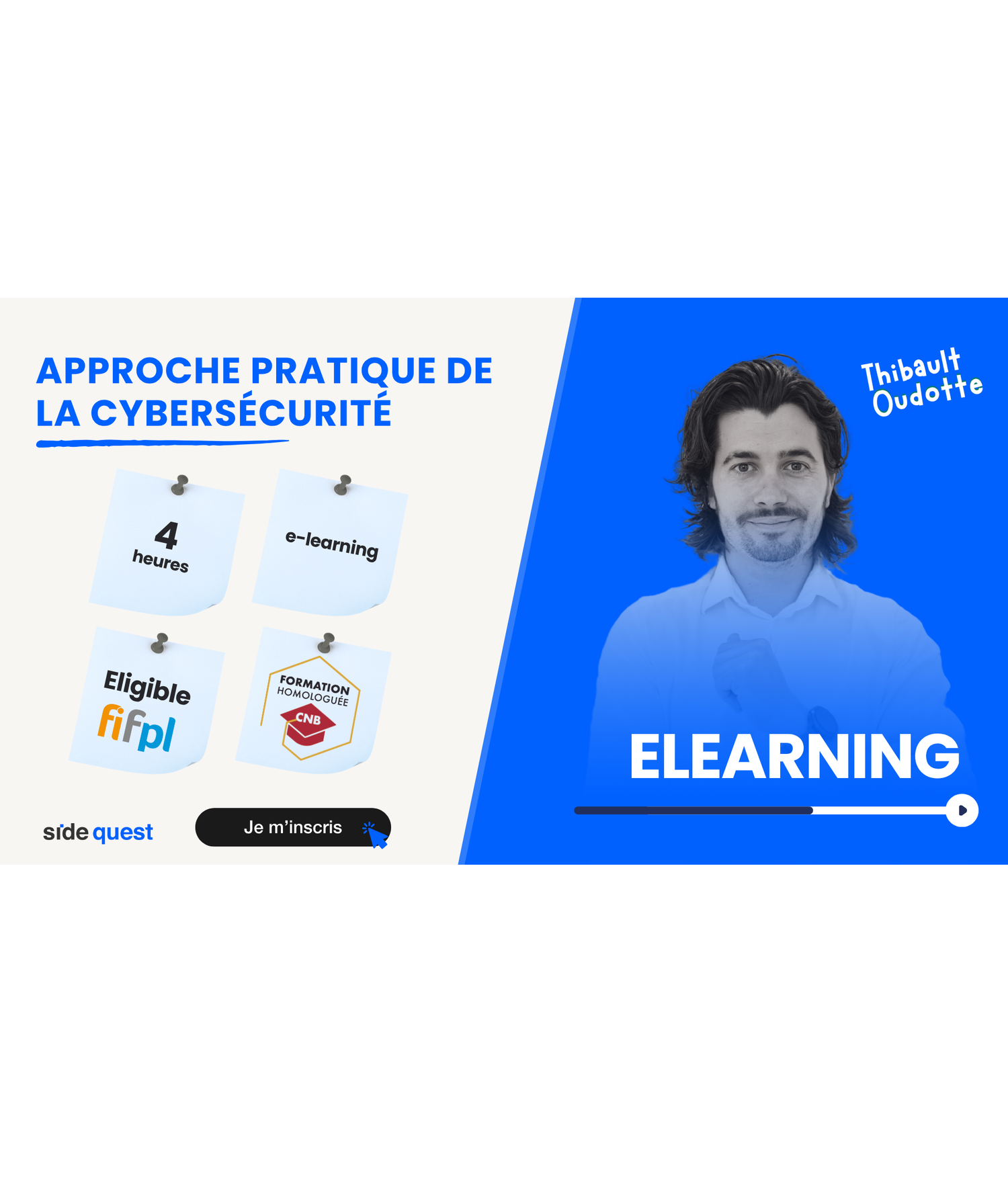 Notre formateur sur cette formation est Thibault Oudotte, Fondateur de Side quest, juriste en cybersécurité (CV ici)