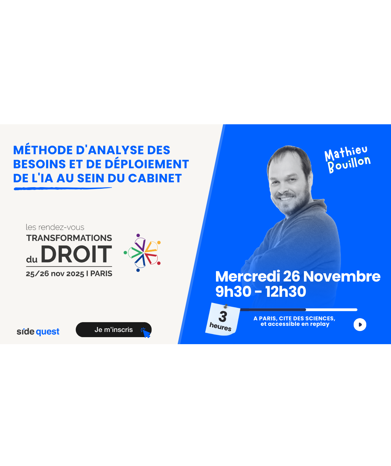 Mercredi 26 nov 2025, 9h30 - 12h30, en présentiel, aux Rendez-vous des Transformations du Droit ou en replay PROMO 200€ HT
